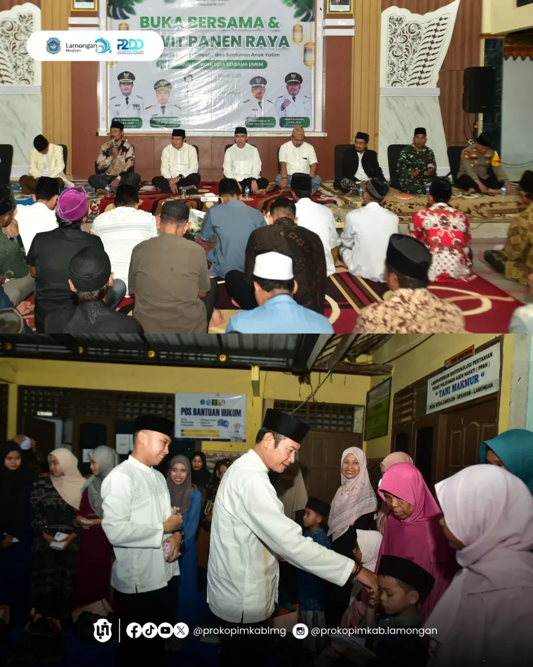 Bupati Lamongan Yuhronur Efendi mengapresiasi kekompakan dan persaudaraan masyarakat Desa Kebalankulon, Kecamatan Sekaran, yang secara rutin menggelar kegiatan santunan bagi dhuafa dan anak yatim setiap tahun. Apresiasi tersebut disampaikan saat menghadiri buka bersama dan wiwit panen raya yang digelar di Balai Desa Hadirogo Ds Kebalankulon, Jumat (13/3), bersama Wakil Bupati Lamongan Dirham Akbar Aksara.