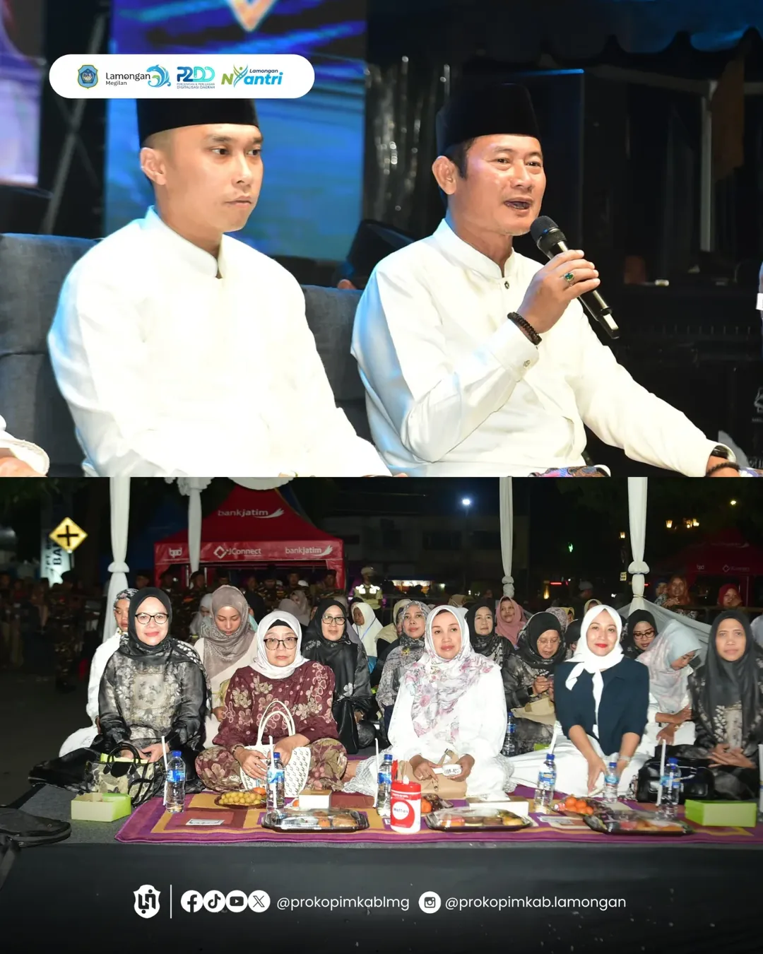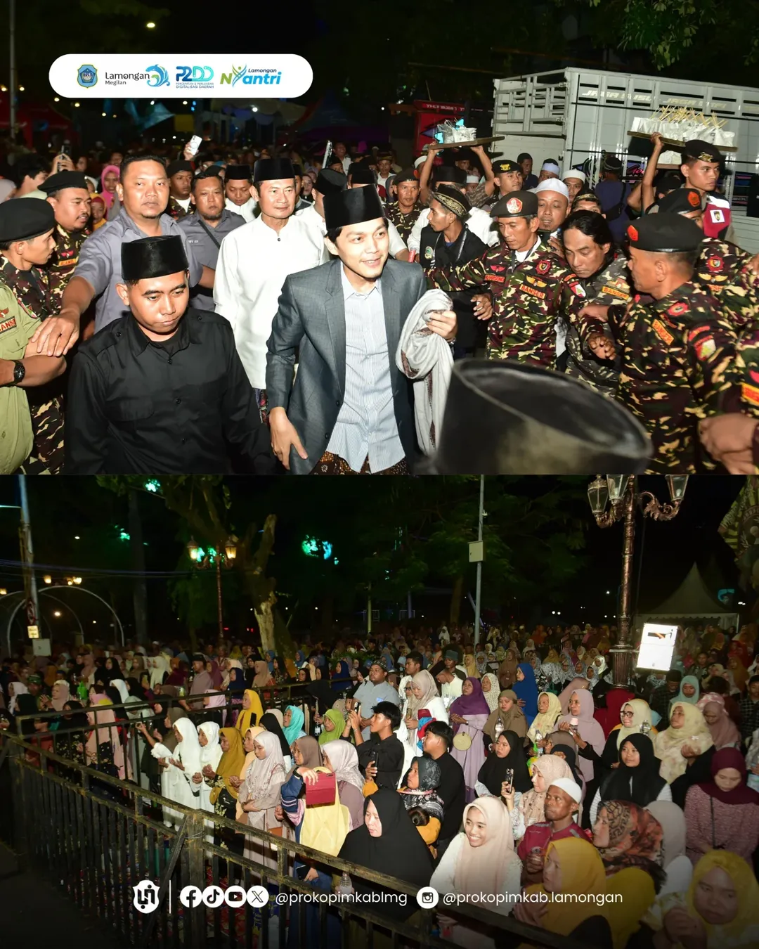 Halaman depan Masjid Agung Lamongan dipadati ribuan masyarakat pada Minggu (15/3) malam. Dengan penuh kekhusyukan, ribuan jamaah mengikuti pengajian bersama Gus Iqdam di hari-hari terakhir Ramadan menjelang hari kemenangan. Menyapa jamaah, Bupati Lamongan Yuhronur Efendi mengajak masyarakat memaksimalkan ibadah di penghujung bulan suci.
