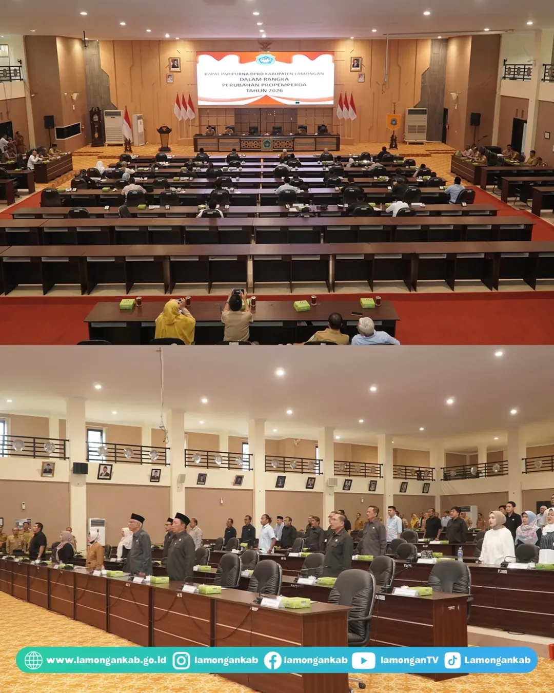 Sebanyak 12 judul Rancangan Program Pembentukan Peraturan Daerah (Propemperda) Tahun 2026 (4 inisiatif DPRD dan 8 usulan Pemda) telah disepakati oleh Badan Pembentukan Peraturan Daerah DPRD dan Pemerintah Daerah Kabupaten Lamongan, pada Senin (30/3) di Ruang Rapat Paripurna DPRD Lamongan. Dalam kesempatan tersebut Bupati Lamongan Yuhronur Efendi mengucapkan terima kasih atas persetujuan yang diberikan terhadap usulan penambahan satu judul Propemperda, yakni Penyertaan Modal Daerah kepada Perusahaan Daerah Air Minum Kabupaten Lamongan.