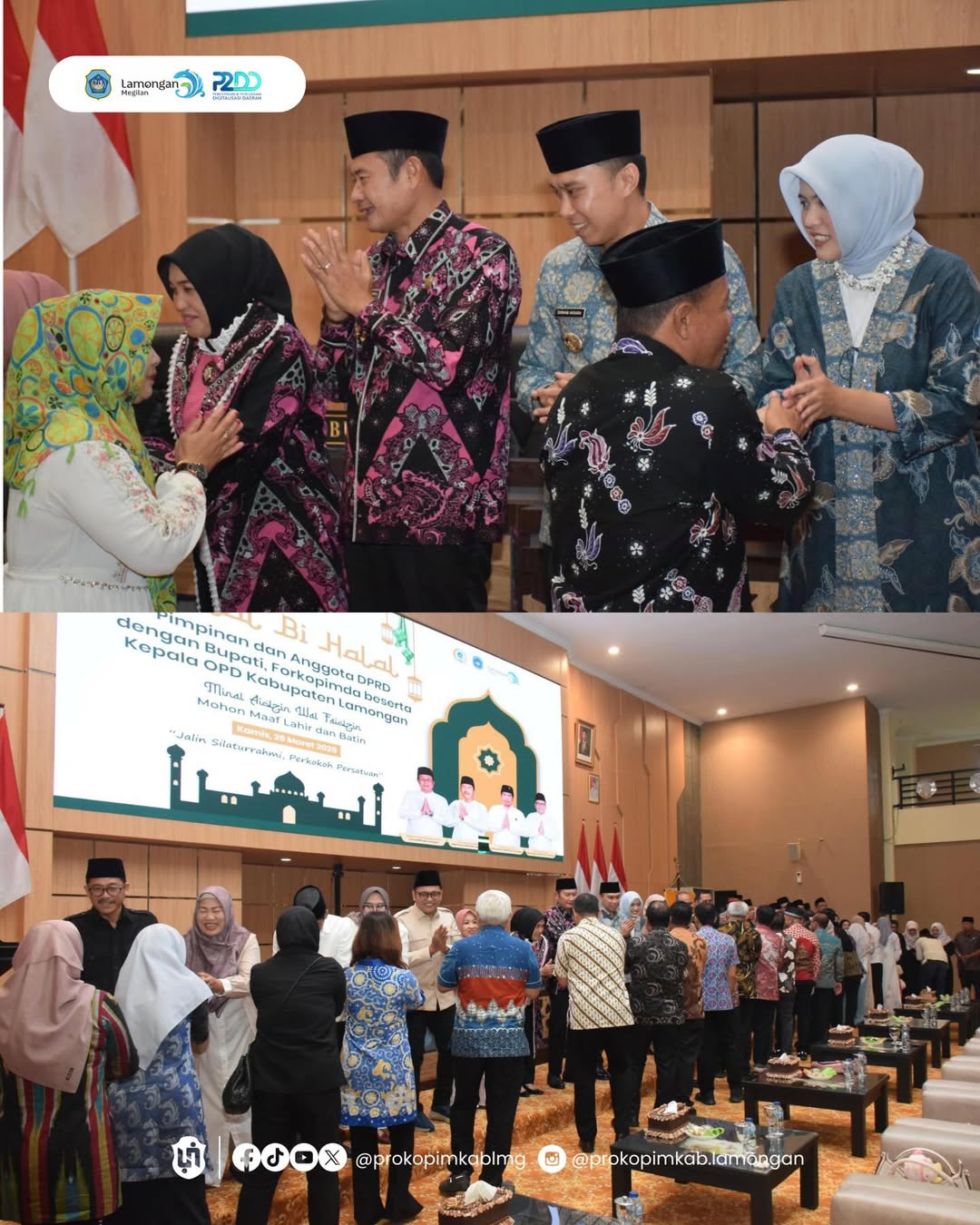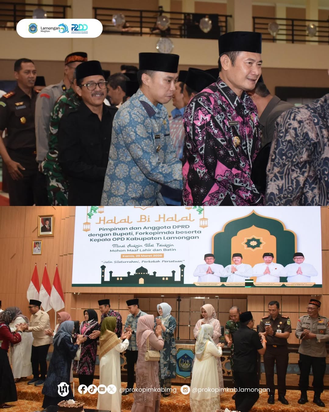 Momentum kebersamaan Hari Raya Idul Fitri dimanfaatkan untuk mempererat silaturahmi sekaligus memperkokoh persatuan antarunsur pemerintahan di Kabupaten Lamongan. Hal tersebut tercermin dalam pertemuan yang dihadiri langsung oleh Bupati Lamongan, Yuhronur Efendi, serta jajaran Pemerintah Kabupaten Lamongan, DPRD, dan Forum Koordinasi Pimpinan Daerah (Forkopimda) dalam suasana penuh keakraban dan kebersamaan di Gedung DPRD Kabupaten Lamongan, Kamis (26/3).