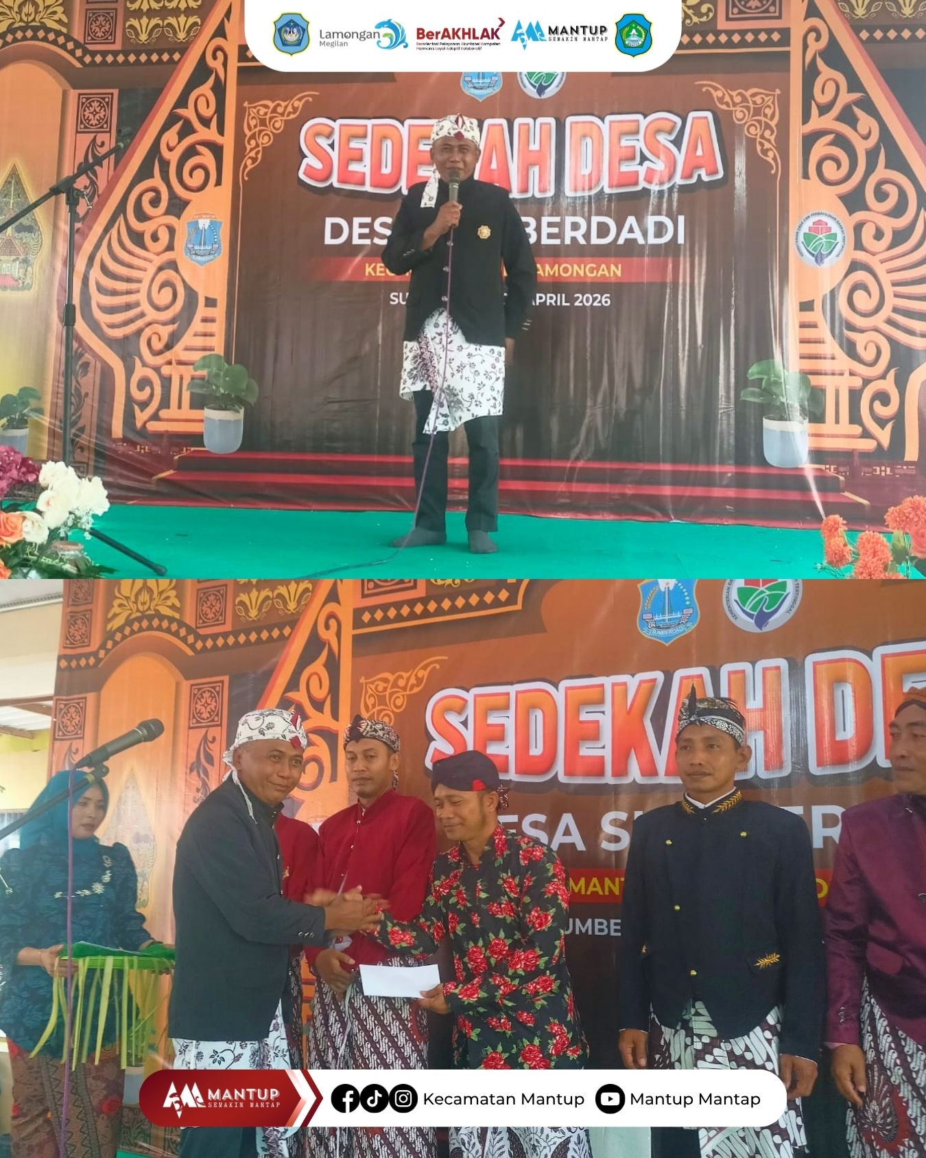 Dalam sambutannya, Camat Mantup, Ilyas, S.Kep., Ns., menyampaikan apresiasi atas terselenggaranya kegiatan Sedekah Bumi yang dinilai mampu menjaga tradisi sekaligus memperkuat kebersamaan masyarakat.