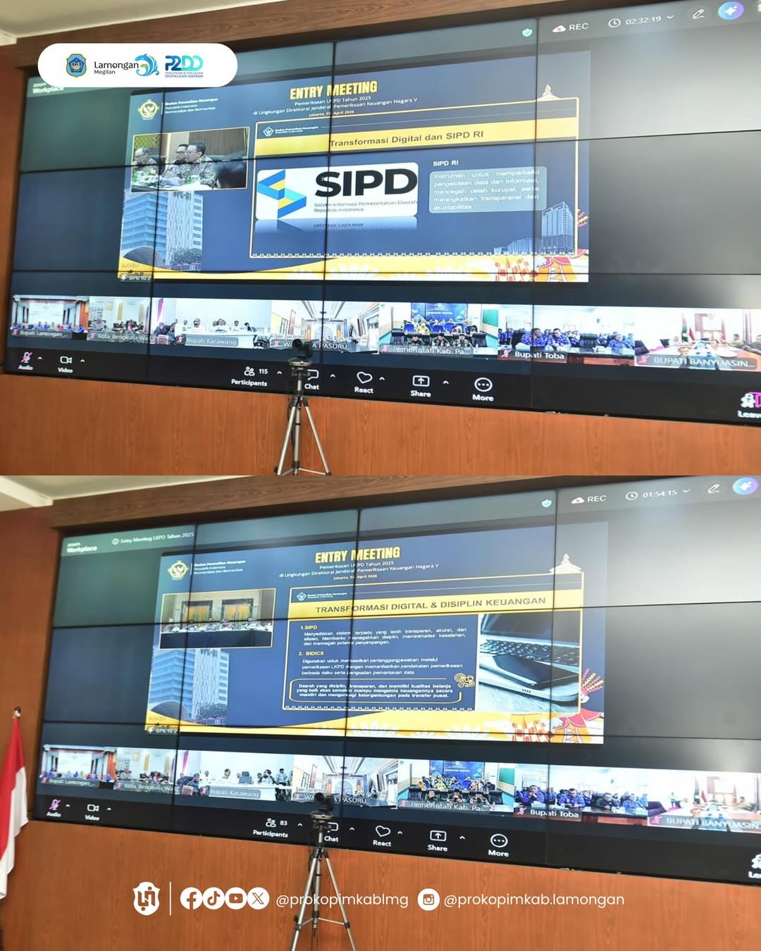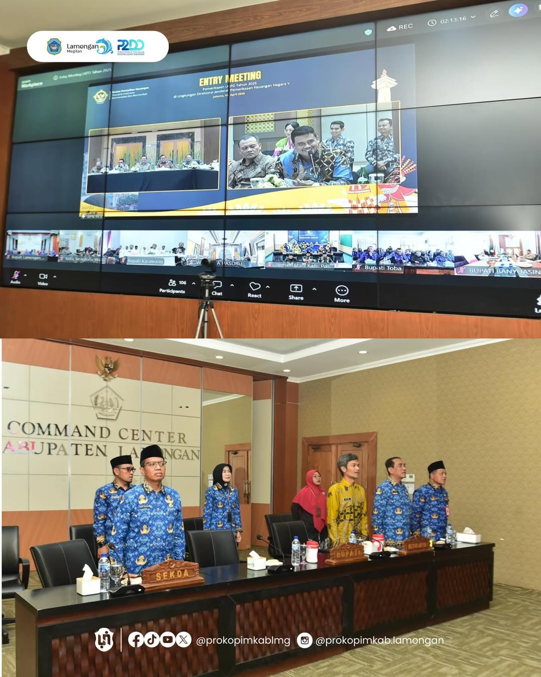 Bupati Lamongan, Yuhronur Efendi mengikuti secara daring entry meeting pemeriksaan Laporan Keuangan Pemerintah Daerah (LKPD) Tahun 2025 bersama BPK RI dari Ruang Command Center Gedung Pemerintah Kabupaten Lamongan, Kamis (2/4). Kegiatan tersebut menjadi langkah awal dalam proses pemeriksaan laporan keuangan daerah sekaligus memperkuat komitmen Pemerintah Kabupaten Lamongan dalam mewujudkan tata kelola keuangan yang disiplin, transparan, dan akuntabel.