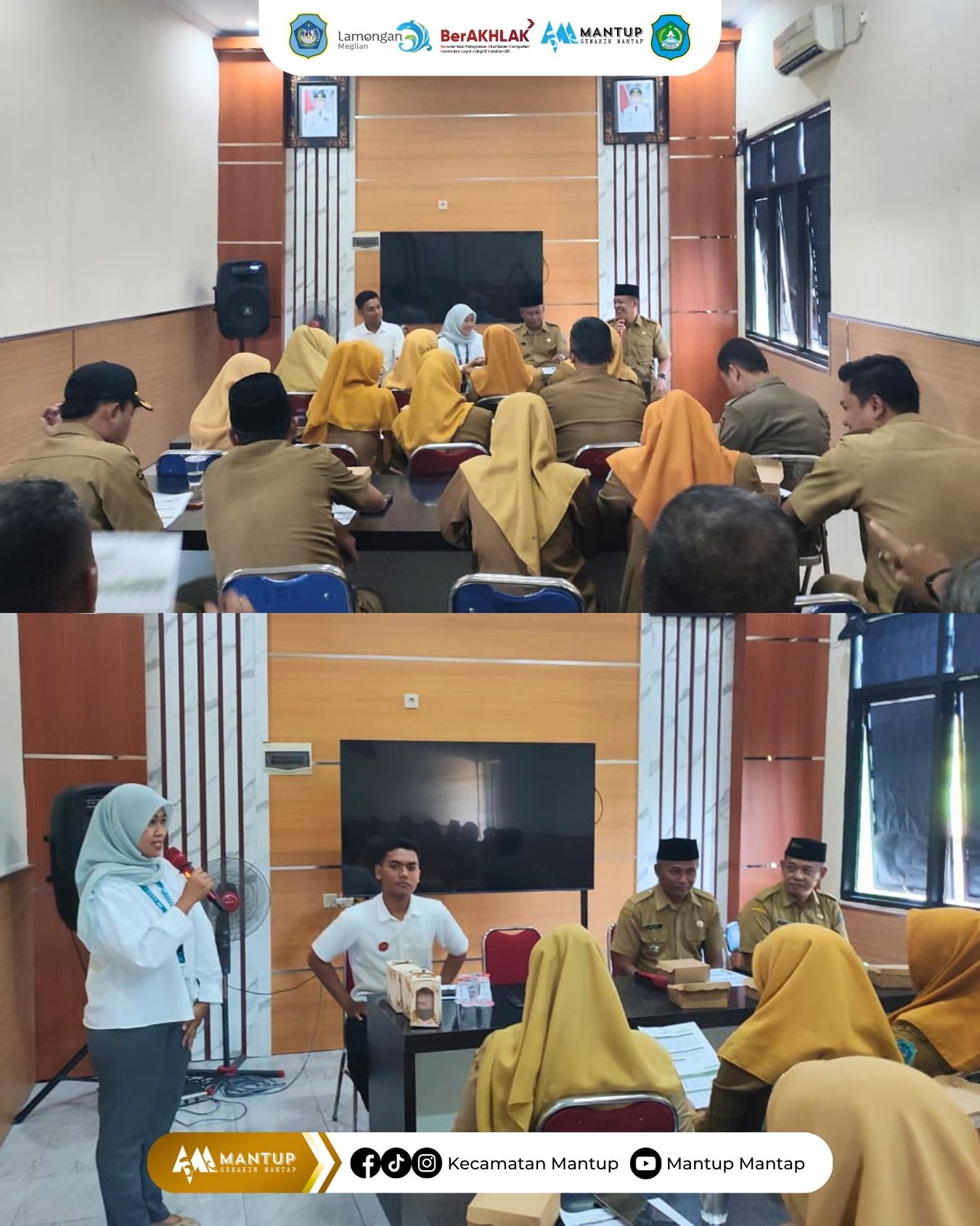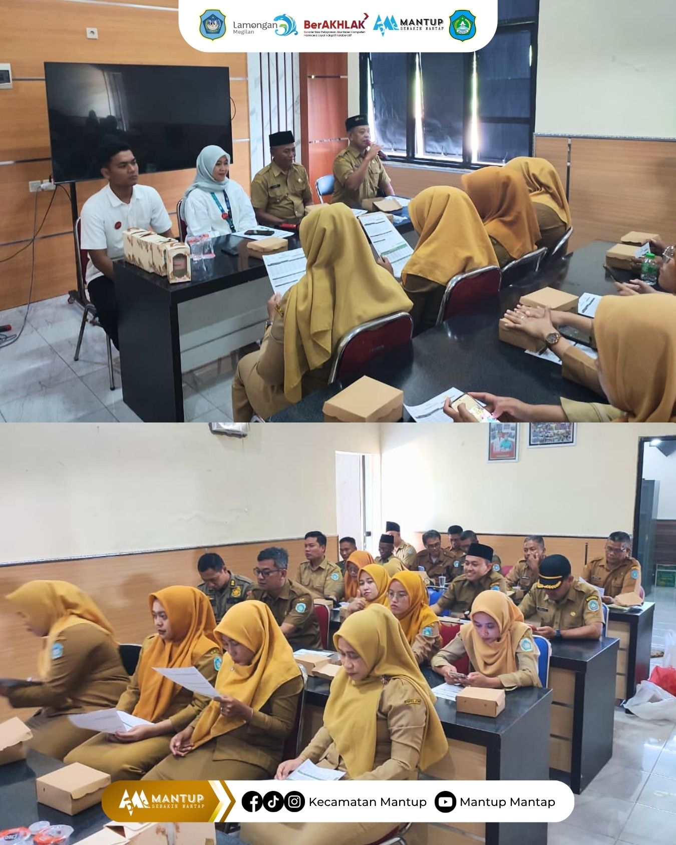 Camat Mantup beserta jajaran dan staf mengikuti kegiatan sosialisasi yang diselenggarakan oleh PT Pegadaian pada Senin (13/4) di Ruang Rapat Kecamatan Mantup. Kegiatan ini bertujuan untuk meningkatkan pemahaman aparatur pemerintahan terkait layanan dan produk keuangan.