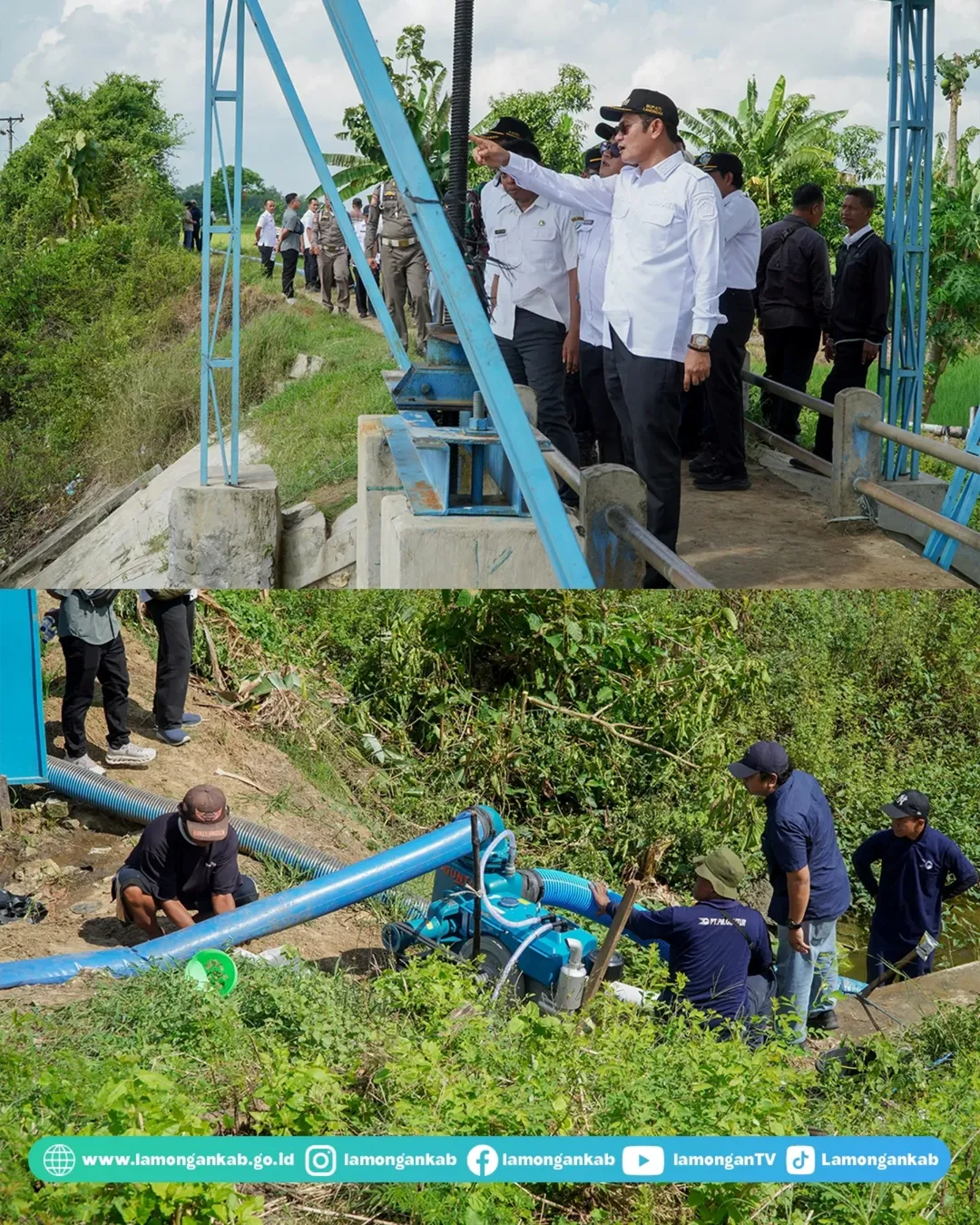 Dirjen Prasarana dan Sarana Pertanian Kementerian Pertanian Andi Nur Alamsyah didampingi Bupati Lamongan Yuhronur Efendi pada Rabu (29/4), melakukan monitoring pompanisasi di Waduk Delikguno Desa Pengumbulanadi Kecamatan Tikung. Meninjau penempatan, penyerahan dan uji coba alsintan (alat dan mesin pertanian) di Lamongan berjalan lancar, beliau optimis Petani Lamongan akan dapat tetap menanam dan terus berproduksi dengan adanya mitigasi lebih awal dalam menghadapi ancaman El Nino.