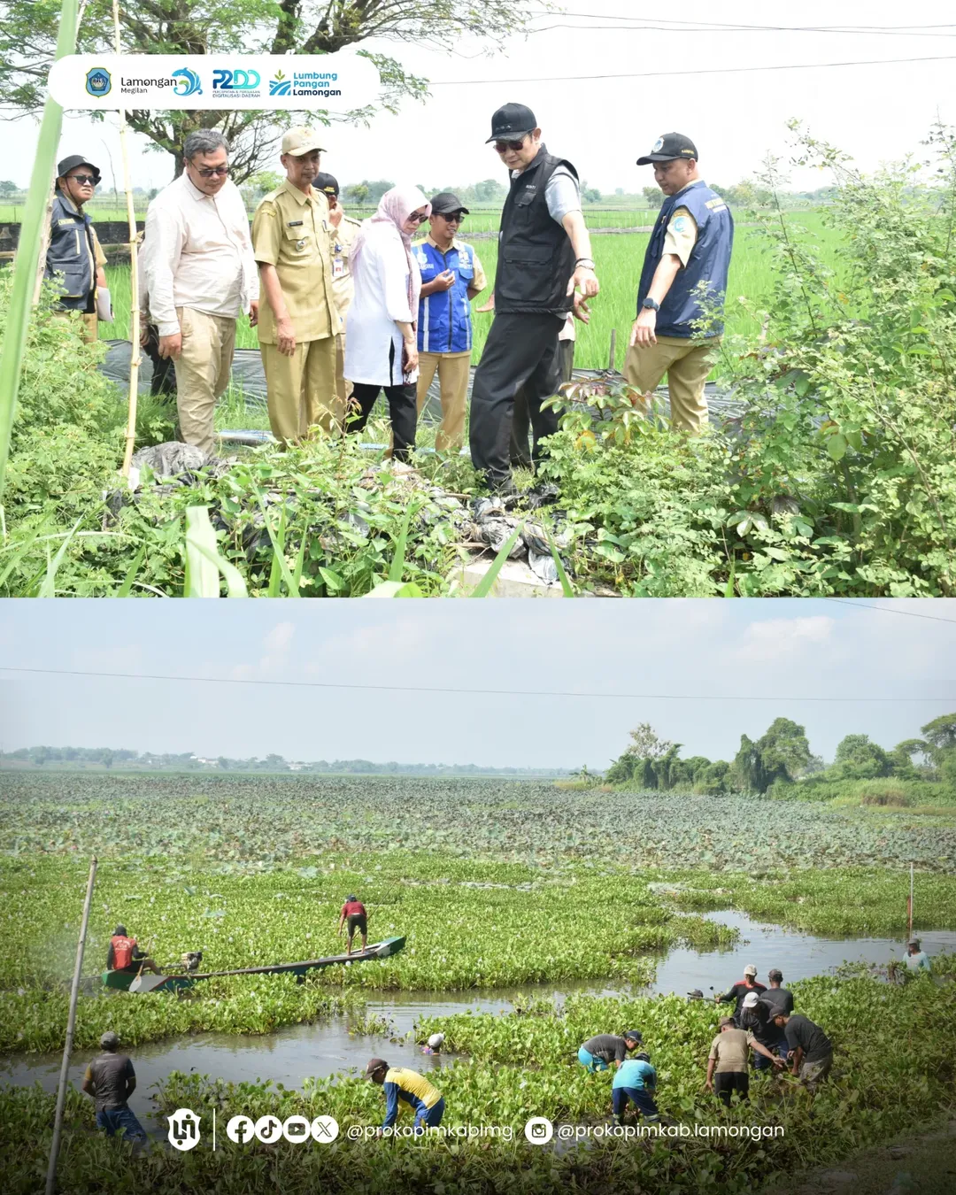 Dalam kesempatan tersebut, Bupati YES juga meninjau kondisi infrastruktur pengairan di lahan pertanian Desa Tambakmenjangan. Ia menemukan sejumlah saluran yang belum berfungsi optimal dan langsung menginstruksikan percepatan pengerukan serta pembenahan jaringan irigasi.