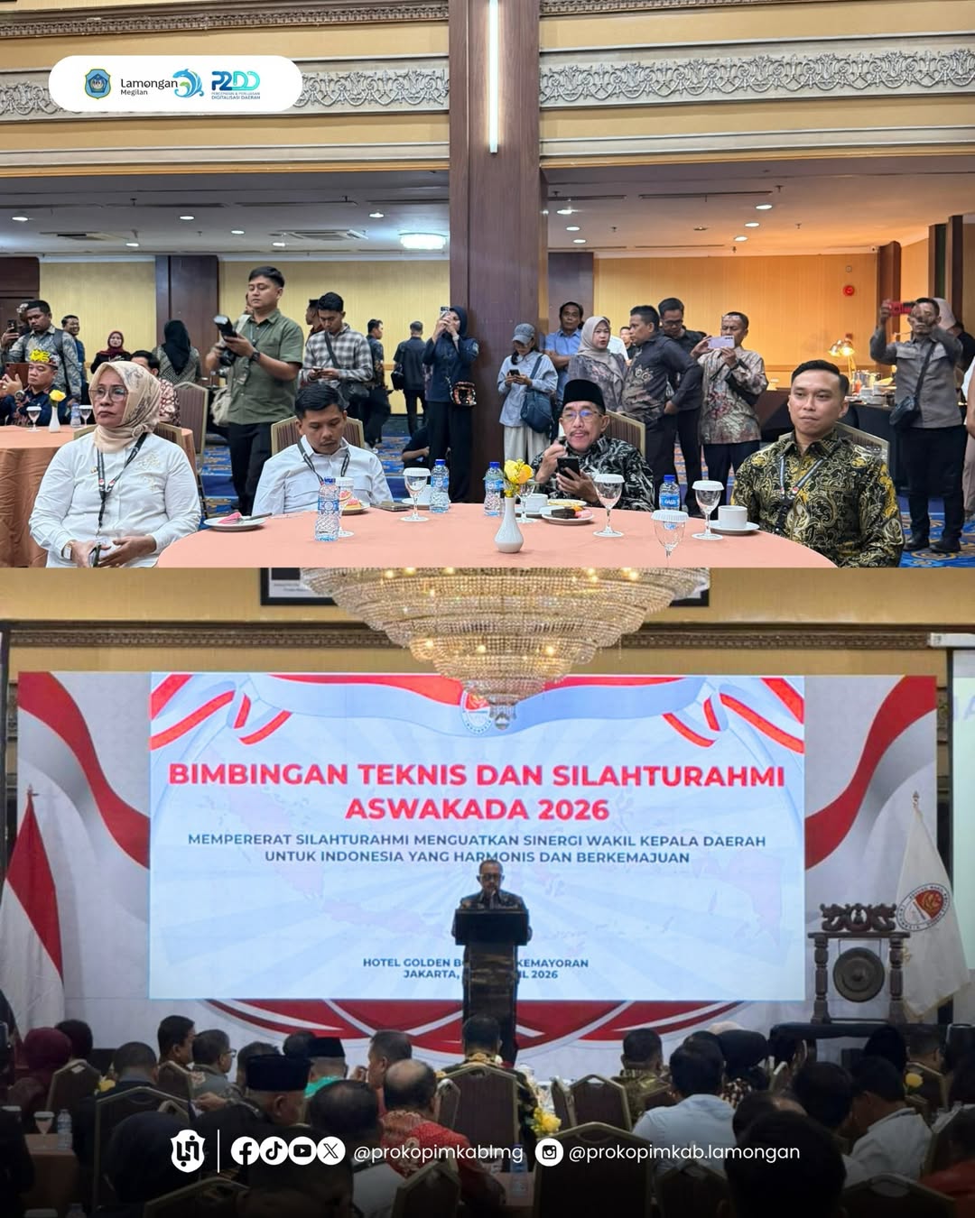 Sebagai upaya dalam mempererat silaturahmi serta menguatkan sinergi antar-wakil kepala daerah, demi mewujudkan Indonesia yang harmonis dan berkemajuan, Wakil Bupati Lamongan, Dirham Akbar Aksara, menghadiri Bimbingan Teknis (Bimtek) dan Silaturahmi Asosiasi Wakil Kepala Daerah (ASWAKADA) Tahun 2026 yang digelar di Hotel Golden Boutique Kemayoran, Jakarta, Senin (27/4) hingga Selasa (28/4). Kegiatan yang diikuti oleh para wakil kepala daerah dari seluruh Indonesia tersebut menjadi forum strategis untuk mempererat koordinasi, saling bertukar pengalaman, serta memperkuat sinergi antarwilayah dalam mendukung pembangunan di tingkat nasional maupun daerah.